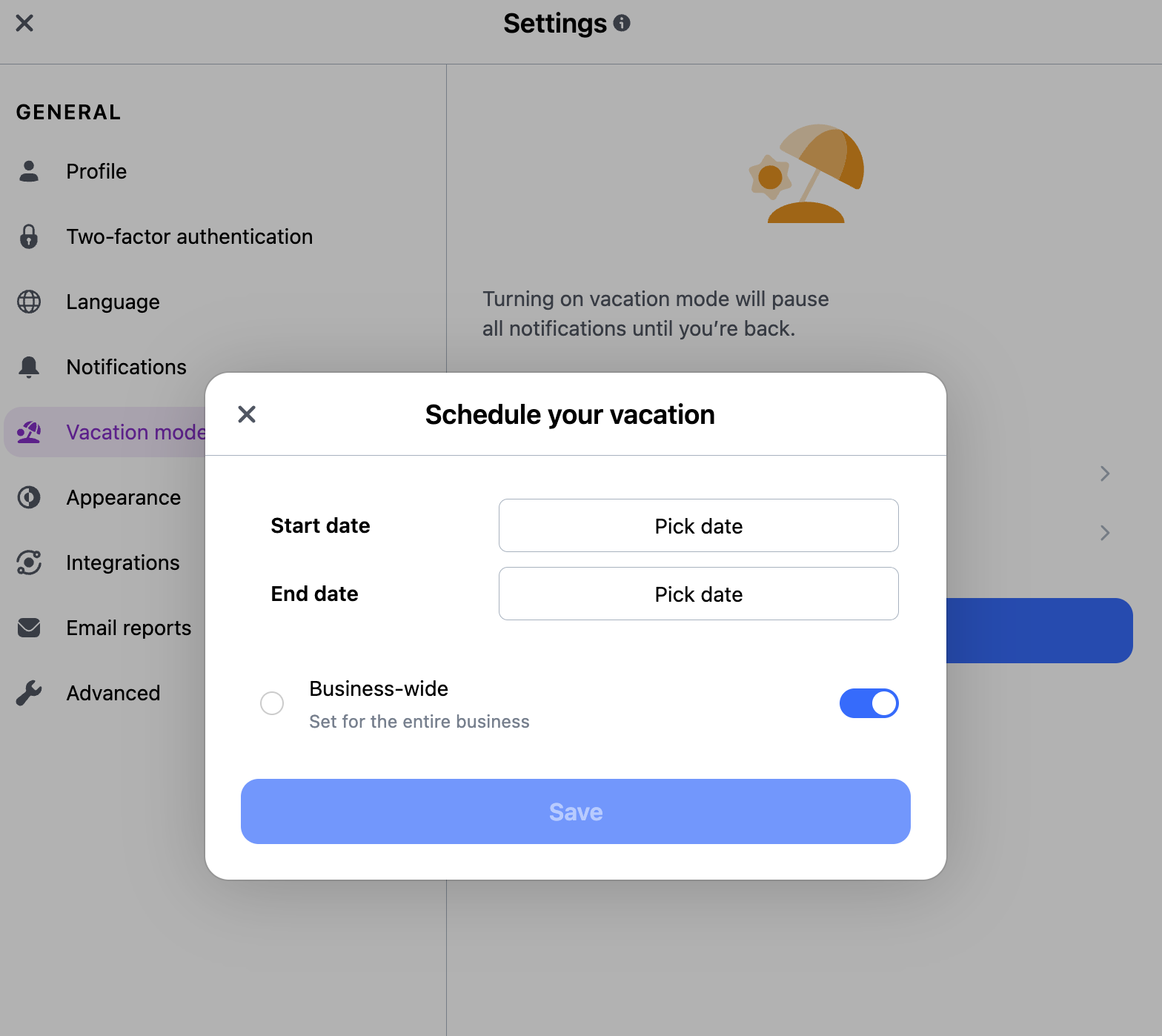 Vacation mode in Nozbe allows you to inform your colleagues that you are away from work and will not be available for a certain period of time. It’s a simple tool that helps avoid misunderstandings and improves team collaboration.